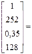 = Якщо Х01 = 252, Х02 =0,35, а Х03 = 128 (задаються дослідником або визначаються по продовженню тенденції їх зміни), то точковий прогноз на 0-й період складе: Y0