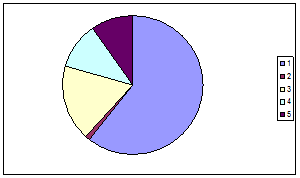 1 – пашня; 2 – пастбища; 3 – прочие земли; 4 – сенокосы; 5 – леса. Рис. 1 Состав и структура земляного фонда на 2004 – 2006 г. Состав и структура товарной продукции (рис. 2) за последние три года претерпели некоторые изменения.