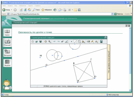 Рис. 102 программа Геометрический планшет Для создания более сложных изображений существует программа CorelDraw. Она предназначена для создания векторной графики. Работа в ней требует более обширных знаний и приобретения специфических навыков. Но данная программа предлагает более широкий спектр возможностей работы с графическими изображениями.