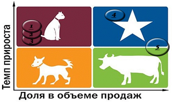 Как видно из таблицы 1 ноутбук выигрывает в плане мобильности, своего компактного размера, наличия уже встроеных в него клавиатуры, мыши, дисплея, вебкамеры, колонок, микрофона, а к компьютеру все это приобретается и подключается отдельно. Однако ноутбук уступает ПК по возможностям апгрейда, что достаточно важно в современном динамично развивающемся мире. К тому же для продвинутых пользователей очень важным может оказаться объем памяти, который можно встроить в машину.... так максимальный объем жесткого диска ноутбука может достигать в редких случаях 1Тбайт, то в ПК можно установить несколько жестких дисков и их суммарный объем будет значительно превышать Тбайт. Определим место каждой группы товаров на рынке города. Для этого необходимо построить матрицу БКГ (Рис. 1).