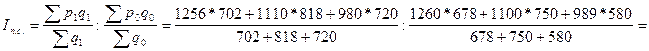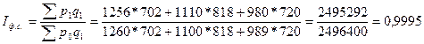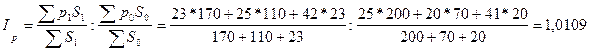 Тогда индекс цен производительности труда в неименных ценах в отчетном периоде по сравнению с базисным равен: