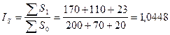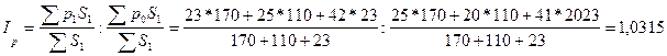 3) индекс влияния изменения структуры посевных площадей на динамику средней урожайности: