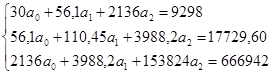 Оскільки фактичне значення критерію менше табличного, то з ймовірністю 0,95 розподіл господарств суттєво не відрізняється від нормативного. Сукупність однорідна Рівняння множинної кореляції матиме вигляд: Для знаходження невідомих параметрів а0, а1 і а2 скористаємося методом найменших квадратів і складемо систему трьох нормальних рівняньвигляду: