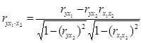 Часткові коефіцієнти кореляції характеризують тісноту зв’язку між двома ознаками, при умові, що третя ознака елімінована (фіксована на постійномуц середньому рівні). Їх розраховуємо за формулами: