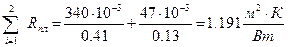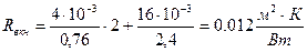 де tв1, tв2 –температури повітря в приміщеннях, 0 С, що приймаються згідно з проведеними вимірами, або приймаються згідно з табл.2; Δtcг – допустима за санітарно-гігієнічними вимогами різниця між температурою внутрішнього повітря і приведеною температурою внутрішньої поверхні огороджувальної конструкції, 0 С, згідно з табл. 4; αв1 – коефіцієнт тепловіддачі внутрішньої поверхні конструкцій, Вт/(м2 К), що приймається згідно з табл.9. Приведений опір теплопередачі, RΣпр , м2 ·К/Вт, непрозорої огороджуючої конструкції при перевірці виконання умови за формулою (1.1) розраховується за формулою