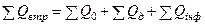 де: Gм – маса матеріалу, що вистигає, кг; cм – питома теплоємність матеріалу (для металів – cм =0,11кДж/кг·0 С); tн – початкова температура матеріалу, що вистигає, 0 С; tдо – кінцева температура матеріалу, що вистигає, 0 С; β – коефіцієнт інтенсивності тепловіддачі (без примусового охолодження β=0,75). 3.6 Сумарні теплонадходження