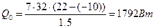 для адміністративного приміщення(з врахуванням тепловтрат через внутрішню стінку). Додаткові тепловтрати через огороджуючи конструкції: βор =0,13