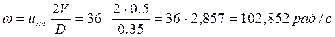 3.2. Приемлемая угловая скорость вращения вала электродвигателя: