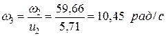 u3 =2,8 тихоходная зубчатая передача, с цилиндрическими колесами. 3.8. Угловые скорости и частоты вращения на валах : (с.5 /3/)