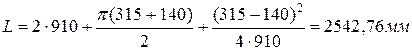 4.1.6 Определяем расчетную длину ремня по выбранному межосевому расстоянию, мм: