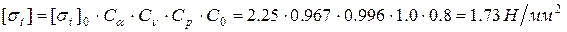 и по таблице 8.9 определяем допускаемое полезное напряжение: