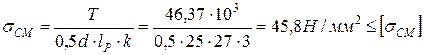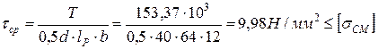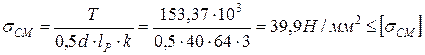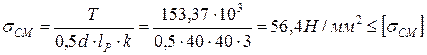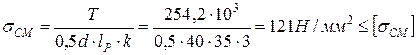 11.2 Условие прочности: на смятие: