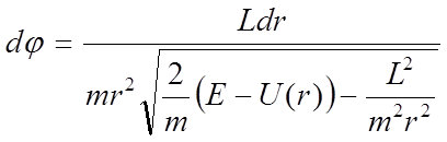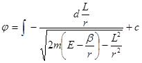Эта формула представляет собой траекторию движения частицы в центральном симметричном поле. Рассмотрим уравнение движения для случая кулоновского поля.