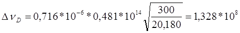 здесь f — сила осциллятора, N —концентрация атомов. Допплеровская полуширина линии:
