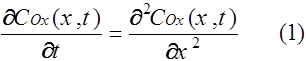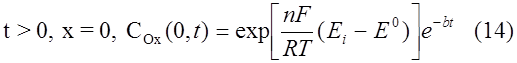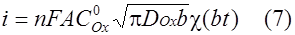 Для описания токов, связанных с электродными реакциями, необходимо решить уравнения (1), (2). Впервые эту задачу решили Шевчик и Рендлс. Рендлс применил для решения графический метод. Аналитический метод, избранный Шевчиком, заключается в применении преобразования Лапласа. После обратного преобразования получается выражение для потока вещества Ox от поверхности электрода.