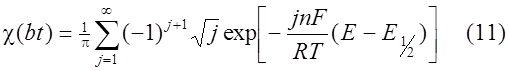 Решение (5) дает зависимость (bt) от bt при данном . Эта функция определяет форму вольтамперных кривых для обратимого процесса. bt связано с потенциалом
