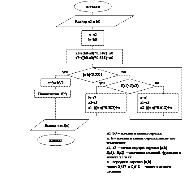 Блок-схемы алгоритмов решения Метод золотого сечения (1 задание)