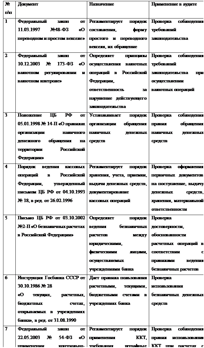 кассового аппарата к автоматизированному рабочему месту кассира, с дальнейшим переносом данных со всеми проводками в бухгалтерию, является большим плюсом при учете денежных средств. Бухгалтерский учет денежных средств имеет важное значение для правильной организации денежного обращения, в эффективном использовании финансовых ресурсов. Умелое распределение денежных средств само по себе может приносить организации дополнительный доход. Для совершенствования контроля за сохранностью и использованием денежных средств ООО «Виктория» предлагается, ввести на предприятии программу внутрихозяйственного контроля. Данная программа позволит усилить контрольные функции всех должностных и материально-ответственных лиц, которые обязаны отвечать за сохранность и целевое использование денежных средств. ЗАКЛЮЧЕНИЕ При проверке состояния учета движения денежных средств предприятия аудитор рассматривает решение многих юридических, финансовых, учетных, экономических вопросов проблемного характера, связанных с необходимостью обеспечения достоверных выводов о качественных сторонах ведения предприятием учета денежных средств. Целью аудиторской проверки операций на расчетном, валютном и других счетах в банке является формирование мнения о достоверности бухгалтерской отчетности по разделу «Денежные средства» и соответствии применяемой методики учета денежных средств на счетах в банке действующим в Российской Федерации нормативным документам. На стадии предварительного обследования необходимо обозначить наиболее важные вопросы, дающие ответ на вопрос об объеме операций по счетам учета денежных средств и позволяющие составить план и программу аудита операций с денежными средствами. В начале проверки следует оценить эффективность внутреннего контроля за движением и сохранностью денежных средств и других ценностей в кассе организации. Предметом проверки выступает: 1) ведение учета денежных средств в соответствии с нормативными документами; 2) остатки по счетам денежных средств — их реальное существование, правильное отражение и представление в отчетности в полном объеме и с использованием соответствующей учетной политики. В связи с этим, аудитором был разработан отчет о проведении проверки, где были указаны все неточности и допущенные ошибки, а также предложен ряд рекомендаций по их устранению и самостоятельному выявлению. Так одной из наиболее важных рекомендаций является проведение внутреннего контроля на предприятии, причем постоянного контроля за денежными средствами. Что позволит сократить объем работы внешним аудиторам, и позволит работать слаженно и без ошибок СПИСОК ИСПОЛЬЗУЕМЫХ ИСТОЧНИКОВ 1. Налоговый кодекс Российской Федерации (Часть первая) от 31.07.1998 N 146-ФЗпринят ГД ФС РФ 16.07.1998 2. Налоговый кодекс Российской Федерации (Часть вторая) от 05.08.2000 N 117-ФЗ принят ГД ФС РФ 19.07.2000 3. Федеральный закон от 7 августа 2001 г. N 119-ФЗ «Об аудиторской деятельности». Принят Государственной Думой 13 июля 2001 года Одобрен Советом Федерации 20 июля 2001 года. (с изменениями от 14, 30 декабря 2001 г., 30 декабря 2004 г.) 4. Федеральный закон от 21.11.1996 N 129-ФЗ «Обухгалтерском учете» принят ГД ФС РФ 23.02.1996 5. «Положение о правилах организации наличного денежного обращения на территории РФ» от 05.01.1998 N 14-П (редакция от 31.10.2002) утверждено Советом дир