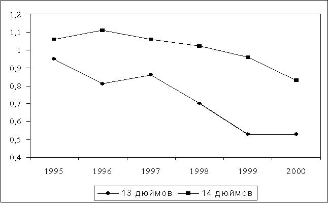 Рис.3 Снижение материалоемкости покрышек 205/70R14.