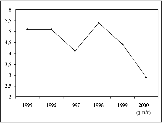 Рис.2 Снижение образования отходов металлокорда (в %) по отношению к использованному количеству металлокорда.