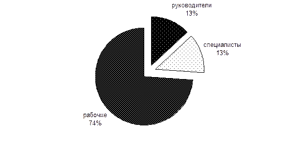 Рисунок 3 - Структура работников Березинского райпо повысивших квалификацию в 2009 г. Как видно из рисунка 3 наибольший удельный вес в структуре приходится на рабочих организации – 74 %.Это объясняется тем, что Березинское райпо постоянно внедряет новые технологии, закупает новое оборудование, поэтому работники должны, во-первых, уметь работать на данных средствах труда, а, во-вторых, эффективно использовать основные производственные фонды организации. Специалистов прошедших обучение составляет 13 %; т.е. прошли обучение, направленное на совершенствование профессиональных знаний и навыков в соответствии с требованиями научно-технического прогресса, структурными изменениями в организации, экономическим и социальным развитием. На рисунке 4 представим долю обученного персонала Березинского райпо в 2009 году в общей численности работников.