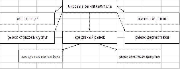 Структура мировых рынков капитала может быть представлена следующим образом: