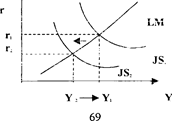 YY, Минфин стремиться уменьшить бюджетный дефицит и увеличивает налоги(+ΔТ). Это повлияет на экономику двояко: - если Центробанк будет поддерживать неизменное денежное предложение, рост налогов сместит JS влево – сократится Y и снизится r: - - если Центробанк будет поддерживать неизменной процентную ставку г, то в ответ на рост налогов и сдвиг JS ( до уровня JS2 ). он должен уменьшить денежное предложение и это сдвигаетLM влево(до уровня LM2 )