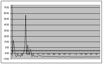 Рис. 16 - График оценки спектральной плотности (2.1) для окна Рисса для центрированного случайного процесса