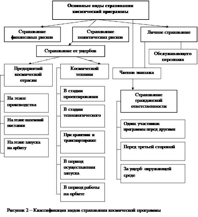 Как видно из таблицы и в подтверждение вышесказанного, наибольшую динамику премий по авиационному страхованию показали страховщики, имеющие преобладание портфеля рисков каско над рисками ответственности. Например, СК "СОГАЗ", приняв на страхование парк воздушных судов крупных российских авиаперевозчиков /ГТК "Россия", "Атлант-Союз", "Газпром-авиа" и др./ сделала наибольший вклад в рост совокупного объёма рынка, увеличив премию в 3,6 раза.[3] 2 Страхование космических рисков (англ. spacecraft insurance) - совокупность видов имущественного и личного страхования, связанных с осуществлением космической деятельности. Первый договор страхования космических рисков был заключен в 1965 г. в отношении космического аппарата Early Bird, принадлежащего консорциуму Comsat. Он покрывал риск предстартовой подготовки и ответственности перед третьими лицами в случае неудачного пуска. Как правило, страхование космических рисков охватывает только коммерческие проекты (космические системы связи, навигации и космического мониторинга), однако существуют прецеденты страхования некоммерческих программ (космические оборонные системы, научные программы). В рамках страхования космических рисков была организована страховая защита для более 99% коммерческих космических проектов. Достаточно интенсивное развитие страхования космических рисков связано с ростом инвестиций в космическую отрасль и бурным развитием телекоммуникационных космических систем, обусловленных глобальной информатизацией. Сначала космические риски размещались на рынке авиационного страхования, однако их специфика способствовала выделению в отдельный вид. За рубежом инфраструктура системы космического страхования в основном уже сложилась. Емкость рынка космического страхования с 1985 выросла со 150 млн. долл. США до 900 млн. в 1997. Ассортимент страховых продуктов постоянно расширяется. Как показывает практика зарубежного страхования космических рисков, еще на этапе бизнес-планирования космического проекта разрабатывается всеобъемлющий план управления риском, в котором особое внимание уделяется организации страховой защиты. Необходимость организации страхового покрытия в большинстве случаев является непременным условием привлечения финансовых средств для реализации проекта. Учитывая значительную капиталоемкость космических проектов, потенциальные инвесторы стремятся максимально снизить свой предпринимательский риск. Особо оговариваются санкции в случае невыполнения условий или сроков осуществления проекта. Потенциальными страхователями в зависимости от этапа реализации космического проекта выступают его инвесторы, разработчики и производители космической техники, а также организация, осуществляющая запуск ракет космического назначения. Однако основным носителем риска является собственник космической системы. Расходы на страхование космических рисков включаются в структуру цены космической продукции (услуги, производимой космической системой). Таким образом, финансирование организации страховой защиты возлагается на конечного потребителя. За рубежом различают следующие основные виды страхового покрытия страхования космических рисков: страхование во время производства и испытаний ракетно-космической техники, функциональные и огневые испытания; период предста