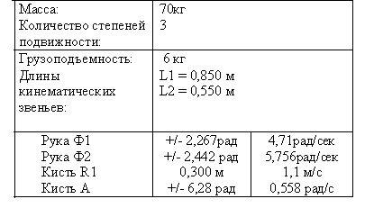 Движение по координате Ф1 и Ф2 осуществляется за счет исполнительного электродвигателя, присоединенного соосно с осью вращения через планетарный редуктор, который обеспечивает высокое передаточное число и высокую точность, при малых габаритах. Перемещение захвата по (изменение координаты R1) происходит за счет пневмоцилиндра, давление необходимое для работы цилиндра подводится извне, вместе с электрическими линиями. Кинематическая схема робота.Чтобы привести данный робот к расчетной кинематической схеме, можно "заморозить" ориентирующую степень подвижности А. Тогда робот можно рассматривать как робот в смешанной системе координат.