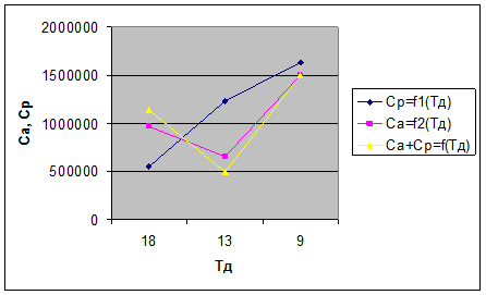 где кнр – коэффициент, учитывающий затраты на неплановые ремонты. Чем больше гарантированный заводом-изготовителем технический ресурс двигателя, тем меньше вероятность его отказа и, следовательно, тем меньше значение кнр ; км – коэффициент, учитывающий затраты на модернизацию двигателя. Чем больше капитальных ремонтов двигателя, тем больше затраты на его модернизацию и, следовательно, тем выше значение км. Для построения кривой Ср = f1 ( Tд ) задаемся последовательно значениями пк = 0,1,2,3, для каждого из которых рассчитываем величину Тд . Если технический ресурс двигателя после капитального ремонта будет обеспечен в пределах β = 0,6 - 0,8 предыдущего ремонтного цикла, то: