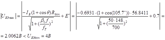 При работе транзистора на частотах ω>3ω T /β0 в реальной схеме генератора можно не ставить сопротивления R доп и R О.С. . Однако в последующих расчетных формулах сопротивление R доп необходимо оставлять. 1. Амплитуда тока базы 2. Максимальное обратное напряжение на эмиттерном переходе 3. Постоянные составляющие базового и эмиттерного токов 4. Напряжение смещения на эмиттерном переходе 5. Значения L ВХ.О.Э , r ВХ.О.Э. , R ВХ.О.Э. , C ВХ.О.Э. в эквивалентной схеме входного сопротивления транзистора на рис. 11.