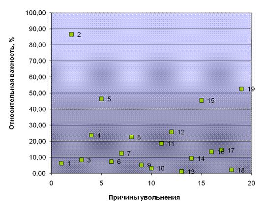 Рис. 3. Относительная важность причин увольнения работников салона красоты и SPA «Victoria»