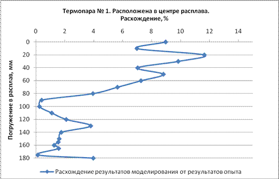 Рис 16. Расхождение модели и опыта для термопары № 1