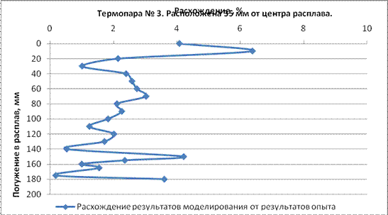 Рис 17. Расхождение модели и опыта для термопары № 3