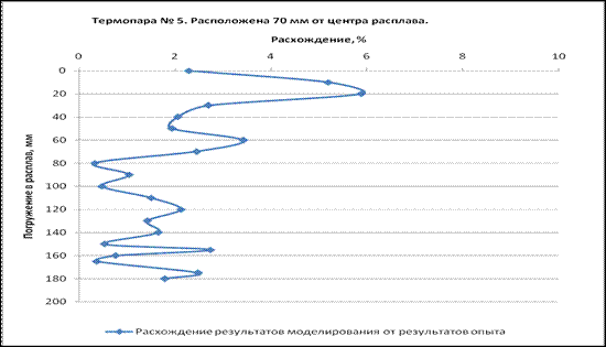 Рис 18. Расхождение модели и опыта для термопары № 5