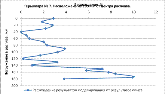 Рис 19. Расхождение модели и опыта для термопары № 7
