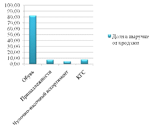 Рисунок 4 - Вклад отдельной товарной единицы в экономический результат работы компании Можно сделать вывод, что наибольшую выручку руководство магазина получает от продажи обуви относительно общей выручке, что составляет больше 80%, наименее прибыльным является продажа чулок, носок, платочков и колгот, так как доля в выручке от продажи данной продукции составляет 4,14%. 7.4 Разработка товарного знака, торговой марки, упаковки товара Товарными знаками, являются вызывающие определенные ассоциации слова, словообразования, графические дизайн - символы. Словари дают такое определение Товарному знаку - это знак: - имеющий вид рисунка, этикетки, клейма и т.д.; - присвоенный определенному товару или фирме; - помещаемый на товаре, его упаковке, фирменных бланках, вывесках, рекламных материалах; - зарегистрированный в соответствующем государственном учреждении; - защищающий исключительные права продавца на пользование товарным знаком. Товарные знаки по законодательству РФ - обозначения, способные отличать товары одних юридических или физических лиц от однородных товаров других юридических или физических лиц. Словосочетание торговая марка пришло из английского языка. trade marc - так это звучит на английском языке. В Российском же законодательстве существует лишь термин товарный знак, который является полным синонимом словосочетаний торговая марка, торговый знак или товарная марка, а также несет в себе большую часть смысловой нагрузки термина брэнд, который в свою очередь имеет несколько более широкий смысл. Товарный знак необходим компаниям для индивидуализации товара или услуги на рынке, вложив огромные средства, зачастую большие, чем вся материальная собственность предприятия, компания (товар, услуга или предложение) приобретает свой уникальный образ и запечатлеется в сознании потребителя как что-то единственное и неповторимое. С этого момента торговую марку можно называть «раскрученным брендом». Но для того, чтобы не лишиться своего бренда, а вместе с ним и средств в него в вложенных, необходимо предварительно его зарегистрировать как товарный знак. Права на товарные знаки охраняются Законом о товарных знаках. Рекламоспособность товарного знака характеризуется следующей совокупностью признаков: новизной идеи, эстетичностью, лаконичностью, ассоциативностью, навязчиво узнаваемым цветом и способностью к адаптации. Нормативные документы по использованию товарного знака в международной практике изложены в Парижской конвенции по охране промышленной собственности 1883 г. и в Мадридской конвенции о международной регистрации товарных знаков 1891г. Товарная марка компании «Монро» произошла от фамилии американской киноактрисы и певицы Мэрилин Монро, одной из самых знаменитых женщин мира, которая сумела сделать из себя богиню, женственную и неповторимую. Можно утверждать, что данная товарная марка стала уже брендом.