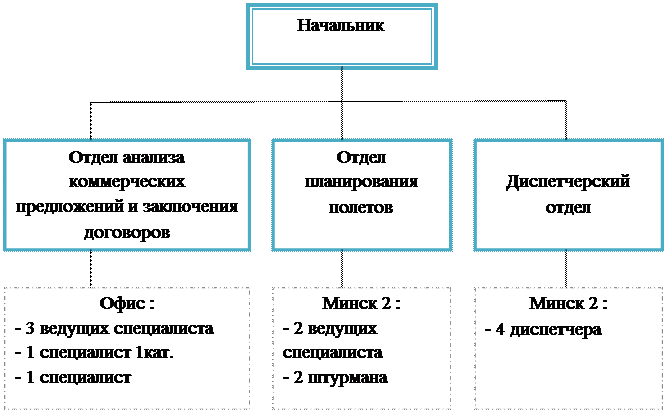 Введение Авиакомпания «Трансавиаэкспорт» - крупнейшая в Беларуси транспортная авиакомпания. В декабре 2010-го года исполнится восемнадцать лет с момента ее выхода на воздушные трассы. Она берет свое начало со времени конверсии авиационных частей военно-транспортной авиации, укомплектованных самолетами Ил - 76. Появление на международном рынке авиатранспортных услуг столь мощной и мобильной авиакомпании вывело Беларусь в ряд государств, располагающих мощным воздушным флотом. Авиакомпания «Трансавиаэкспорт» была создана Постановлением Совета Министров Республики Беларусь от 10.11.1992 года № 677 как акционерное общество в рамках сокращения Вооруженных Сил республики и конверсии, высвобождаемых в связи с этим основных фондов Министерства обороны и зарегистрирована Минским городским исполнительным комитетом 29 декабря 1992 года. В соответствии с Указом Президента Республики Беларусь от 04.04.1995 года № 126 авиакомпания реорганизована в государственное предприятие и передана в полное хозяйственное ведение Государственному комитету по авиации Республики Беларусь. Предметом особого внимания является парк воздушных судов (ВС) авиакомпании. На модернизацию и поддержание летной годности самолетов в соответствии с международными требованиями вложено 30 миллионов долларов США. Военно-транспортные самолеты переоборудованы в вариант для перевозки гражданских грузов. Самолеты оснащены системой предупреждения опасного сближения в воздухе, системой навигации и посадки, обеспечения вертикального эшелонирования полетов. ОАО «Авиакомпания Трансавиаэкспорт» зарегистрирована в Международной организации гражданской авиации (идентификатор ИКАО - ТХС), а также входит в Международную ассоциацию воздушного транспорта (идентификатор ИАТА - AL), является членом Межгосударственного авиационного комитета Содружества независимых государств (МАК). Авиакомпания является официально зарегистрированным авиаперевозчиком Организации Объединенных Наций. Таким образом прохождение ознакомительной практики на предприятии такого уровня может стать хорошим опытом для молодого перспективного специалиста. 1. Организационная структура предприятия. Управление авиакомпанией осуществляется в соответствии с законодательством Республики Беларусь, Уставом на основе сочетания прав и интересов трудового коллектива и государства. Авиакомпания самостоятельно определяет структуру управления и после ее утверждения в государственном комитете по авиации РБ, устанавливает штаты и затраты на управление. Государство осуществляет свои права по управлению авиакомпанией через государственный комитет по авиации РБ. Директор авиакомпании назначается на должность Государственным комитетом по авиации РБ, с ним заключается в письменном виде контракт. Директор осуществляет свою деятельность на основании действующего законодательства и несет персональную ответственность за деятельность предприятия и выполнение возложенных на него задач. Кроме директора руководство авиакомпанией осуществляют: - заместитель директора по коммерческой работе; - заместитель директора по идеологической работе и кадрам; - заместитель директора по материально-техническому снабжению и связи; - главный экономист; - главный бухгалтер; Первый заместитель директора, начальник инсп