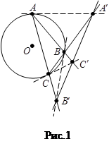 З а д а ч а 1. Доказать, что точки пересечения прямых, содержащих стороны треугольника, с касательными к описанной окружности в противоположных им вершинах коллинеарны. § 2 Углы и площади