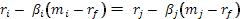 Условие равновесия рисковых активов звучит так: в равновесии все активы должны приносить одинаковую, с учетом поправки на риск, норму дохода. Если имеется два актива i