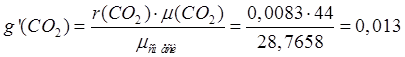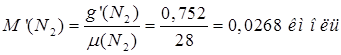 Таблица 5 – Молярная масса компонентов воздушной смеси