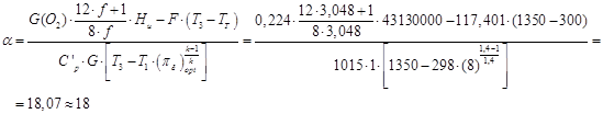 2.3 Определение коэффициента избытка воздуха Основано на обеспечении заданной температуры перед турбиной. Для расчёта примем соотношение