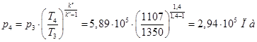 Точка 4. Процесс 3–4 – адиабатное расширение продуктов сгорания в турбине: