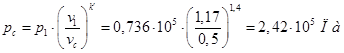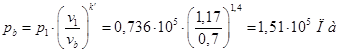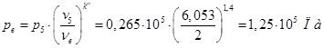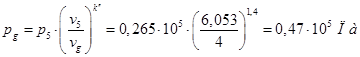 5. Расчет параметров состояния рабочего тела в промежуточных точках процессов сжатия и расширения5.1 Расчёт для процессов, изображаемых в p - v -координатах Определение значений параметров p и v в промежуточных точках процессов 1–2, 3–4 и 4–5 позволяет построить достаточно точные графики. Поскольку процессы 1–2 и 3–4–5 адиабатные, то для любой пары точек на них справедливы соотношения: