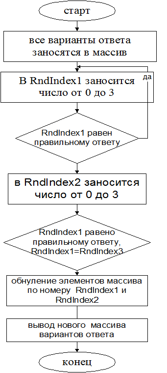 Блок-схема алгоритма процедуры, обеспечивающей в игре подсказку “50 на 50”.
