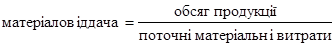 де Ск –середній за період підсумок балансу. 6. Матеріаловіддача: