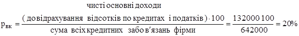 де Vp – виторг від реалізації продукції (робіт, послуг); П – валовий прибуток. 2. Рентабельність усього капіталу фірми: