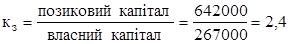Це значить, що на кожен долар власного капіталу фірми приспадає 2,4 долара позикових коштів. 19. Коефіцієнт фінансування: