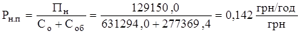 Тут: Г – авансований капітал, грн; Г’ –капітал, отриманий після реалізації товарної продукції (використаний капітал), грн; К – рівень збільшення використаного капіталу Г’ над авансованим Г; Со – вартість основних засобів і нематеріальних активів, грн; Сп – капіталізований прибуток, грн; Ра – рентабельність авансованого капіталу, частки од. (Ра = Сп / (Со + Соб )). Критерієм вибору кращого господарського рішення має бути умова, при якій забезпечується прибуток не нижче від норми, тобто Ек де Рн. а – нормативна рентабельність авансованого капіталу, що становить відношення нормативного (капіталізованого, Сп.н ) прибутку до авансовано-го капіталу, частки од. Оскільки нормативний капіталізований прибуток є річним нормативним прибутком за один оборот оборотних коштів, то існує зв’язок між рентабельністю авансованого капіталу Рн.а та рентабельністю виробництва Рн.п :